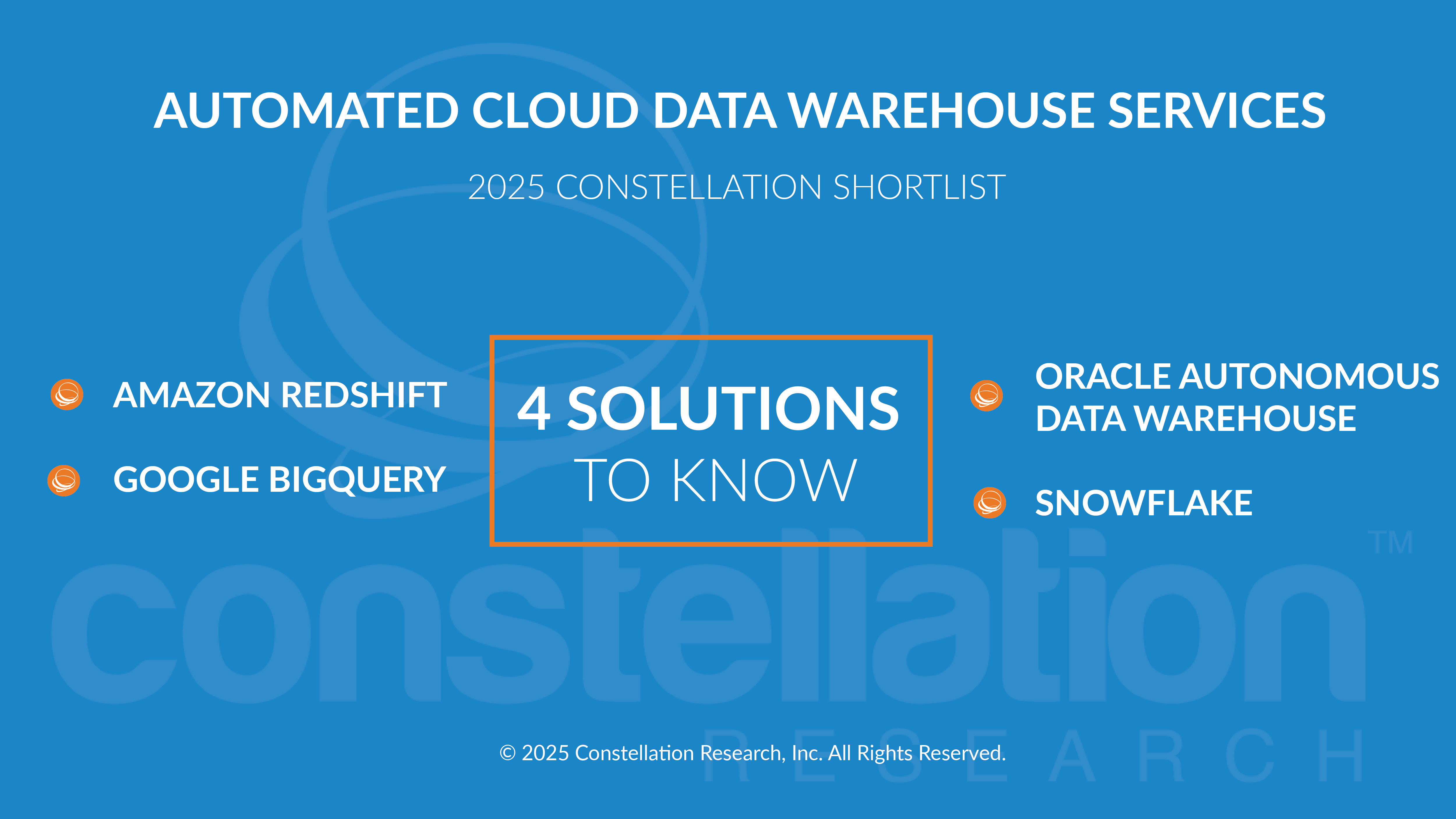 This ShortList presents Constellation’s pick of highly automated cloud data warehouse services. The vendors included on this ShortList are unchanged since its 2024 publication.
