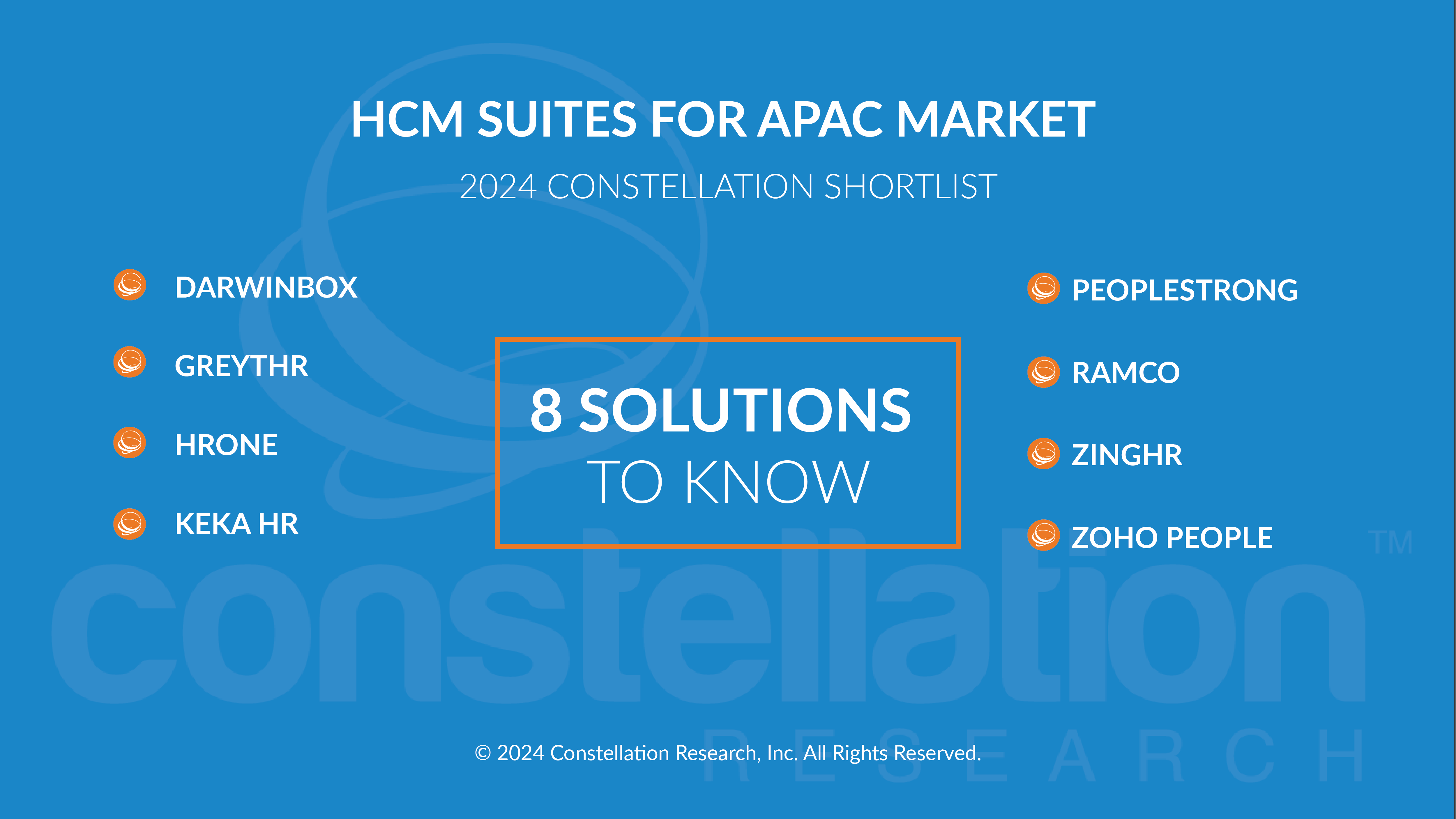 A human capital management (HCM) suite is a collection of key HCM functionality covered by a single vendor across multiple capabilities. Regarding functionality, Constellation looks for strong HR core and payroll capabilities as the main areas of functional necessity, but vendors equally must have substantial talent management, workforce management and benefits functionalities. As for geographical focus, vendors must operate in at least 5 (or more APAC nations Artificial Intelligence is changing enterprise automation substantially and HCM is no exception.