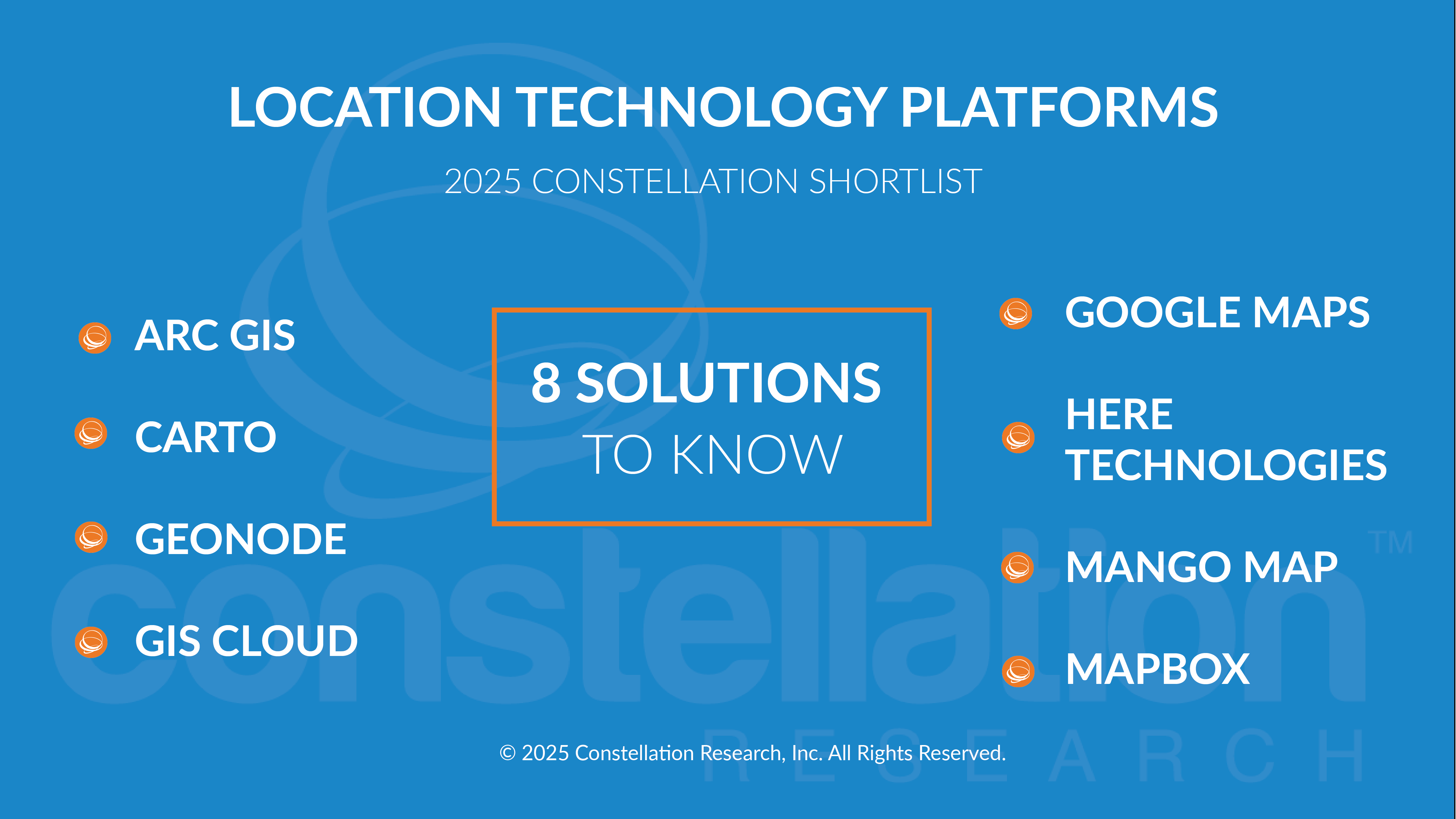 The location technology platforms category refers to software that turns spatial data into contextually actionable information. Constellation estimates the market size for software and services to be close to $45.7 billion by 2030 at an 11.8% CAGR. These systems extract and interpret spatial data from a variety of sources and deliver it into common formats. Spatial data often powers next-best actions inside maps and visualizations for a wide variety of industries.